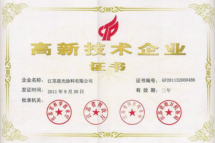 • 4月,《常温固化氟碳涂料》被科技部授予国家星火计划项目。