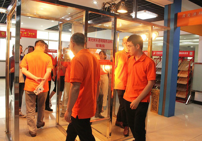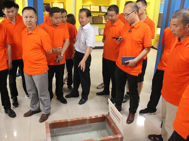JN体育缪国元董事长亲自接待跨省而来的客人,并热情带领他们参观了JN体育工业园总部,到访的嘉宾都是行业内的精英,所以JN体育在产品展示时,更侧重于代表着行业革新实力的黑科技产品,包括水包砂多彩石、智能变色调光膜、瓷砖粘结剂、晶瓷水器、超薄防水涂料等多个品种的展示,让到访嘉宾眼前一亮,对于这些创新产品非常感兴趣。